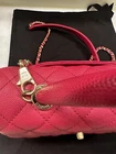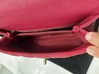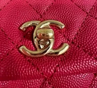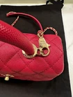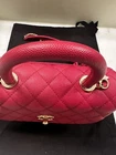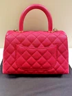 The bag is in like new / excellent condition. No corner wear. No loose stitching. This is an authentic CHANEL Caviar Quilted Mini Coco Handle Flap in Fuchsia. This classic tote is crafted of diamond quilted caviar leather in dark pink. It features a lizard leather top handle, a rear patch pocket, a leather threaded polished gold chain link shoulder strap with a shoulder pad, and a polished gold Chanel CC turn lock. The flap opens to a partitioned fabric interior with a zipper pocket and central patch pocket. Series 30, Super rare and popular, highly sought after, sold out worldwide. Comes With Authenticity card Dust bag White Chanel shopping bag Base length: 9 in Height: 5.5 in Width: 3.75 in Drop: 2.75 in Drop: 17.75 in