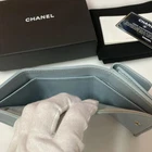 Chanel Tri-Fold Mini Wallet Coco Mark Button Light Blue