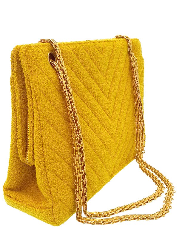 Chanel V-Stitch Chain Shoulder Bag #T727 Chanel V-Stitch Chain Shoulder Bag #T727 ---Description--- Condition : USED - Condition (Machine translation) - Although there are signs of wear and damage, this used item is in good overall condition. There are scratches on the surface and fuzz on the zipper handle. There is a small amount of dirt. [Other] Corrosion is visible. [Matte gold hardware] [Canvas] Item rank: AB N New item S Items that are unused but have slight changes in condition due to being displayed in a stored. SA Watches, jewelry and other items that have been finished and have no scratches to mention. The bag is in near-unused condition. A It is a good item in good condition, although it has some signs of use and scratches. AB The item is in good condition overall, although it shows signs of use and scratches. B This item shows signs of use and scratches as if it had been used on a daily basis. BC This item has many signs of use and scratches as if it had been used on a daily basis. C It is an item that has been used quite a bit and has noticeable scratches, signs of use and deterioration. D These are products that are difficult to use, such as torn, discolored, or partially functional. Size: W:28cm H:12cm D:8cm Shoulder:70cm Material: canvas Color: Yellow Accessories: Pouch (removable) Guarantee card: None (no serial number sticker) Please check items photo about condition. This is a machine translation, so feel free to ask questions if you do not understand. ---Shipping & Payment--- The shipping method is DHL or FedEx or UPS. We take a maximum of 5 business days for handling time. We do not accept cancellations after an order has been placed. ---International Buyers - Please Note:--- Import duties, taxes, and charges are not included in the item price or shipping cost. These charges are the buyer's responsibility. Please check with your country's customs office to determine what these additional costs will be prior to bidding or buying. We do not accept cancellations after an order has been placed due to system reasons. We are officially registered as legal business in Japan police. Public Safety Committees Number is 431280053434.