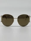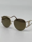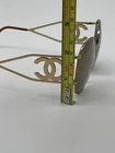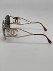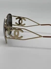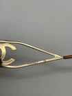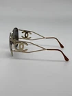 chic and exceedingly rare pair of Chanel Vintage Miller Sunglasses. The sunglasses were crafted in Italy in the 1990s of shiny golden metal with resin temple tips for comfort. The temples are adorned with Chanel's iconic entwined CC logo. The lenses are brown. Style #05258 Gold harware The sunglasses are in previously worn, vintage condition. As is the case with any previously worn, vintage sunglasses, the materials comprising these sunglasses have some faint scratches, scutts, tarnish and light fading of the Gold finishing (see photograph). The case has some scratches and scuffs. The box is not available. Over all the sun glasses still in good condition!!!