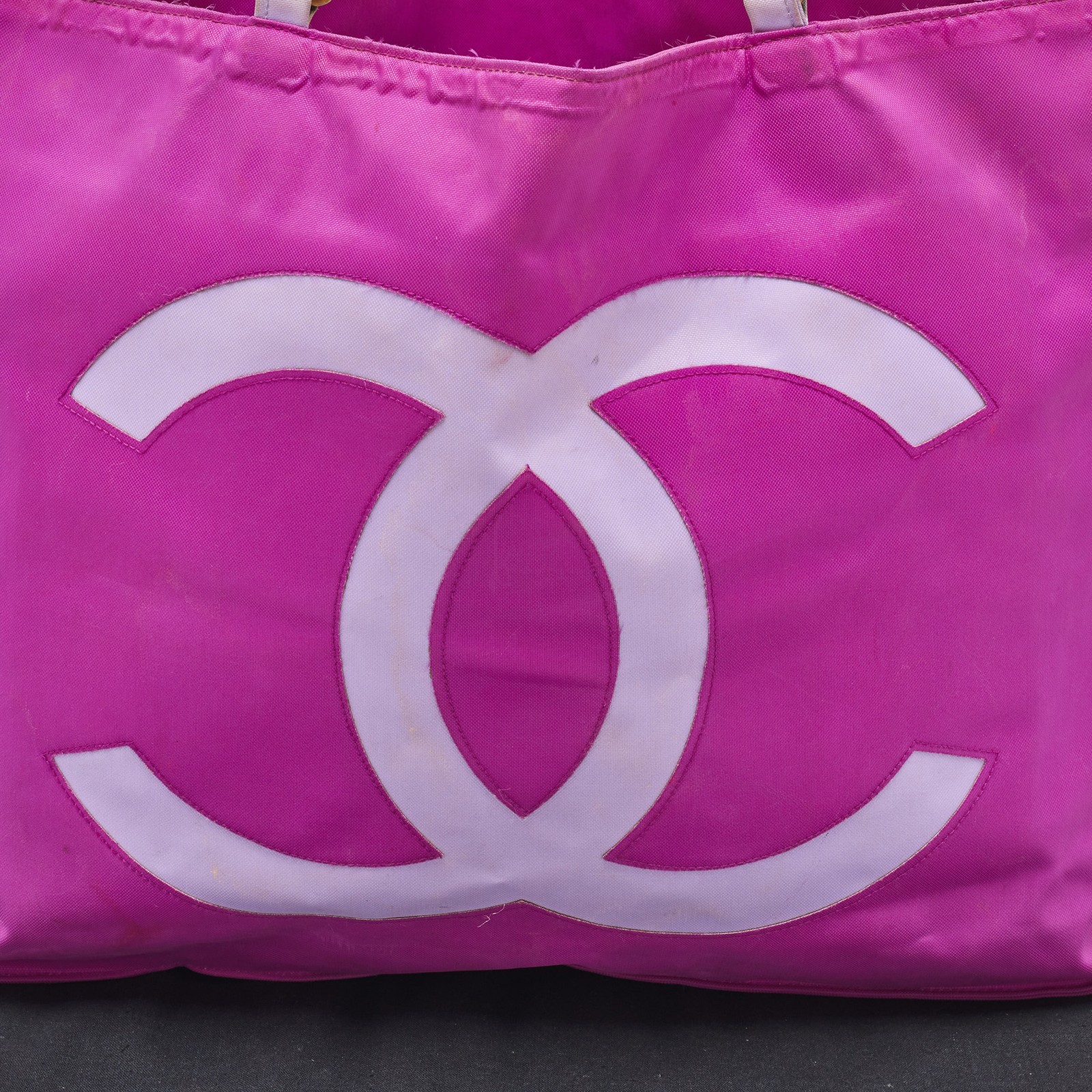 This Chanel tote offers a perfect blend of casual elegance and iconic style. Featuring the classic CC logo in bold contrast against the soft pink nylon, it exudes a playful yet refined vibe. Its spacious interior and durable design make it an ideal choice for everyday use.Certified by The Luxury Closet - This item has gone through a detailed authentication process overseen by our experts. We offer a lifetime guarantee of authenticity on all our items. Import duties, taxes and charges are not included in the item price. These charges are the buyers responsibility. Please check with your country’s customs office to determine what these additional cost will be prior to buying. Our eBay Store About Us Contact Us Add to Favorite Sellers Chanel Pink Nylon Vintage CC Logo Shopper Tote $991.1 This Chanel tote offers a perfect blend of casual elegance and iconic style. Featuring the classic CC logo in bold contrast against the soft pink nylon, it exudes a playful yet refined vibe. Its spacious interior and durable design make it an ideal choice for everyday use. Product Details Brand Color Pink Dimensions Height: 30 cm, Width: 10 cm, Length: 40 cm Material Nylon Size Outsole Width Outsole Length Heel Height Includes The Luxury Closet Packaging Certified by The Luxury Closet This item has gone through a detailed authentication process overseen by our experts. We offer a lifetime guarantee of authenticity on all our items. How We Check The in-house team of experts at The Luxury Closet is highly trained to verify the authenticity and the condition of the luxury products. They ensure that only 100% authentic items are put on sale.The evaluation process is unique with its own mix of assessment criteria and differs according to the category. Each item is evaluated based on the following combination of hallmarks, hardware, stitching, symmetry, material, craftsmanship, stamping, codes, hologram stickers, and packaging. Our authenticators also check if the items have been modified or amended (e.g., aftermarket diamonds, replaced batteries, repaired bags, etc.) International Buyers Import duties, taxes and charges are not included in the item price. These charges are the buyers responsibility. Please check with your country’s customs office to determine what these additional cost will be prior to buying.