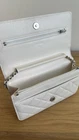 Authentic CHANEL White Lambskin Quilted 19 Wallet on Chain - with Silver Hardware A modern icon from Chanel’s celebrated 19 collection, this Wallet on Chain (WOC) is crafted from luxuriously soft white lambskin leather, featuring the signature oversized diamond quilting and mixed-metal hardware. Chic yet practical, it’s perfect for hands-free elegance. Features: Model: Chanel 19 Wallet on Chain Material: Supple lambskin leather in Chanel quilting Color: Crisp, elegant white Hardware: Signature Chanel 19 mixed metals – shiny aged silver Strap: Leather-woven chain strap with shoulder leather pad (crossbody or shoulder wear) Interior: Fine fabric lining with multiple card slots, zipper compartment, and slip pockets Origin: Made in Italy Approx. 7” W x 5” H x 1.5” D Excellent pre-owned condition with minimal signs of use. Leather is bright and smooth, hardware retains its beautiful shine, and the interior is clean and well-kept. This Chanel 19 WOC offers the perfect balance of luxury and function, carrying essentials with effortless style. The mixed-metal hardware makes it versatile to pair with any jewelry tone, and the crisp white lambskin makes a striking statement year-round. 100% Authenticity Guaranteed – Buy with confidence through eBay authenticity guaranteed from a trusted seller.