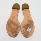 These Chanel white leather slides are topped with a delicate bow detail for an ultra feminine finish. Light and breezy, they’re ideal for summer styling. Pair with monochrome ensembles or pastel dresses for a refined seasonal touch.Certified by The Luxury Closet - This item has gone through a detailed authentication process overseen by our experts. We offer a lifetime guarantee of authenticity on all our items. Import duties, taxes and charges are not included in the item price. These charges are the buyers responsibility. Please check with your country’s customs office to determine what these additional cost will be prior to buying. Our eBay Store About Us Contact Us Add to Favorite Sellers Chanel White Leather Bow Slide Sandals Size 39.5 $339.9 These Chanel white leather slides are topped with a delicate bow detail for an ultra feminine finish. Light and breezy, they’re ideal for summer styling. Pair with monochrome ensembles or pastel dresses for a refined seasonal touch. Product Details Brand Color White Dimensions Material Leather Size 39.5 Outsole Width 9 cm Outsole Length 25 cm Heel Height 3.5 cm Includes The Luxury Closet Packaging Certified by The Luxury Closet This item has gone through a detailed authentication process overseen by our experts. We offer a lifetime guarantee of authenticity on all our items. How We Check The in-house team of experts at The Luxury Closet is highly trained to verify the authenticity and the condition of the luxury products. They ensure that only 100% authentic items are put on sale.The evaluation process is unique with its own mix of assessment criteria and differs according to the category. Each item is evaluated based on the following combination of hallmarks, hardware, stitching, symmetry, material, craftsmanship, stamping, codes, hologram stickers, and packaging. Our authenticators also check if the items have been modified or amended (e.g., aftermarket diamonds, replaced batteries, repaired bags, etc.) International Buyers Import duties, taxes and charges are not included in the item price. These charges are the buyers responsibility. Please check with your country’s customs office to determine what these additional cost will be prior to buying.