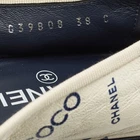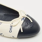 These ballet flats from Chanel combine white leather with contrasting navy blue cap toes. Finished with subtle CC logo detail and dainty bows, they offer a timeless take on everyday chic. The perfect pairing for denim, workwear, or travel, they’re an enduring wardrobe cornerstone.Certified by The Luxury Closet - This item has gone through a detailed authentication process overseen by our experts. We offer a lifetime guarantee of authenticity on all our items. Import duties, taxes and charges are not included in the item price. These charges are the buyers responsibility. Please check with your country’s customs office to determine what these additional cost will be prior to buying. Our eBay Store About Us Contact Us Add to Favorite Sellers Chanel White/Navy Blue Leather CC Cap Toe Ballet Flats Size 38 $1030.7 These ballet flats from Chanel combine white leather with contrasting navy blue cap toes. Finished with subtle CC logo detail and dainty bows, they offer a timeless take on everyday chic. The perfect pairing for denim, workwear, or travel, they’re an enduring wardrobe cornerstone. Product Details Brand Color Navy Blue Dimensions Material Leather Size 38 Outsole Width Outsole Length Heel Height Includes Certified by The Luxury Closet This item has gone through a detailed authentication process overseen by our experts. We offer a lifetime guarantee of authenticity on all our items. How We Check The in-house team of experts at The Luxury Closet is highly trained to verify the authenticity and the condition of the luxury products. They ensure that only 100% authentic items are put on sale.The evaluation process is unique with its own mix of assessment criteria and differs according to the category. Each item is evaluated based on the following combination of hallmarks, hardware, stitching, symmetry, material, craftsmanship, stamping, codes, hologram stickers, and packaging. Our authenticators also check if the items have been modified or amended (e.g., aftermarket diamonds, replaced batteries, repaired bags, etc.) International Buyers Import duties, taxes and charges are not included in the item price. These charges are the buyers responsibility. Please check with your country’s customs office to determine what these additional cost will be prior to buying.