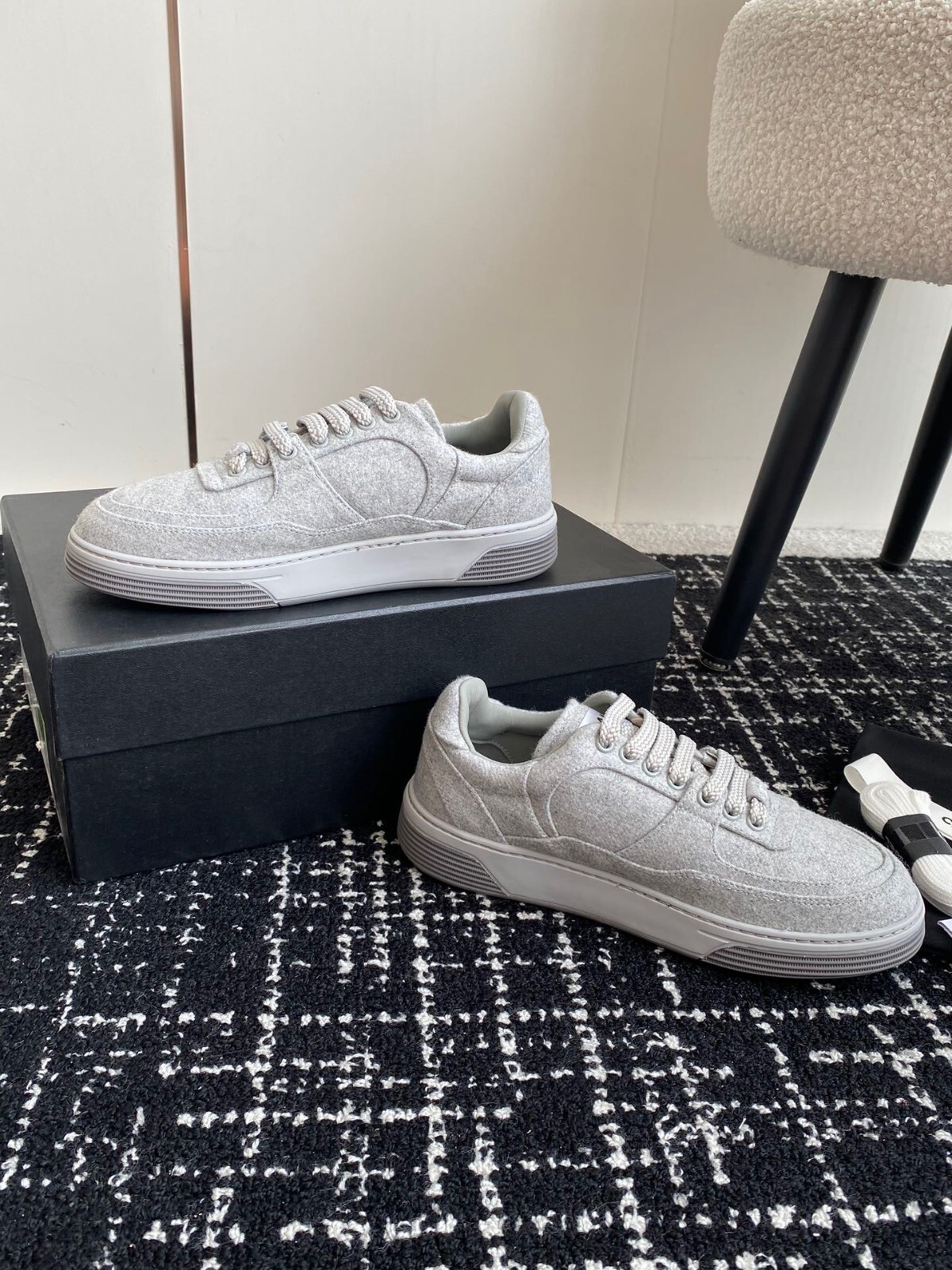 The Chanel sneakers in size 8.5 for women are crafted from 100% wool, featuring a stylish logo design with a comfortable and cushioned construction. These sneakers are perfect for women who appreciate a blend of fashion and comfort, with adjustable features for a personalized fit. The gray color adds a versatile touch to the overall style, making them a stylish choice for everyday wear or athletic activities. Made with high-quality materials and a renowned brand like Chanel, these sneakers are sure to be a timeless addition to any wardrobe.