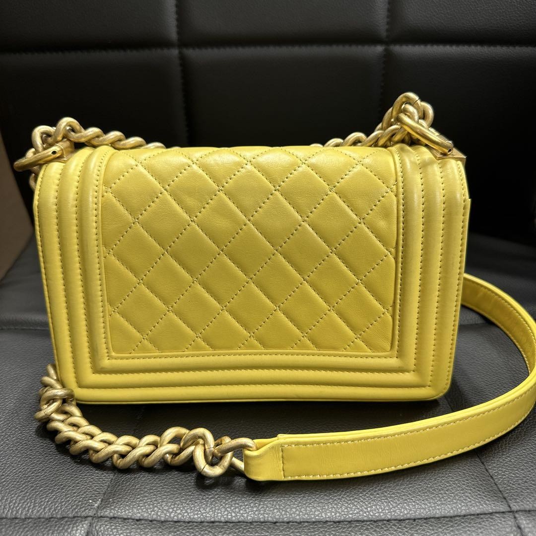 Chanel Yellow Single Flap Shoulder Bag Key Features Chanel Matelasse Quilted Box Shoulder Bag in Yellow. This stylish bag features a classic quilted design with a chain strap, offering a luxurious look. Made from soft lambskin, it has a single flap closure and measures approximately 20cm. The bag is in excellent condition with no stains or tears. Perfect for adding elegance to any outfit. Please contact us before purchase as this item is also available at multiple retail locations. Item Specifics: - Brand: Chanel - Model: Flap Bag - Style: Matelasse Quilted - Shape: Box - Color: Yellow - Material: Lambskin - Size: 20cm - Strap: Chain Shoulder - Closure: Single Flap - Condition: Excellent, no stains or tears Specifications Brand Chanel Country Japan Product Description Description Thank you for your interest. This item is not new, but a used item that was given away. Please check the photos for the condition of the item. Please understand that the condition of the item is subjective and the standard of evaluation and feeling may vary from person to person, so please be aware that this is a used item before bidding. Please check the photos for the condition of the item, such as scratches and stains. To prevent problems, please feel free to contact us if you have any questions about the size or other details of the item. We will be happy to adjust the price. We will do our best to ship your order as soon as possible. We will do our best to ship as soon as possible, but there may be delays during the busy harvest season. Remarks All the products we sell are obtained and sold by pawn shops that are authorized brands, so all the products we handle have been authenticated to meet our strict standards for authenticity, so please buy with confidence. Payment Supports managed payments Please pay within 5 days after auction is finished. About Us We are located in Japan. It's our pleasure to make you happy by proposing our recommend item. If you have any questions or request about items, please feel free to ask us. International Buyers - Please Note: -Importduties, taxes, and charges are not included in the item price or shipping charges. These charges are the buyer's responsibility. -Please check with your country's customs office to determine what these additional costs will be prior to bidding/buying. -These charges are normally collected by the delivering freight (shipping) company or when you pick the item up - do not confuse them for additional shipping charges. -We do not mark merchandise values below value or mark items as - gifts - The US and International government regulations prohibit such behavior. Thank you for your understanding