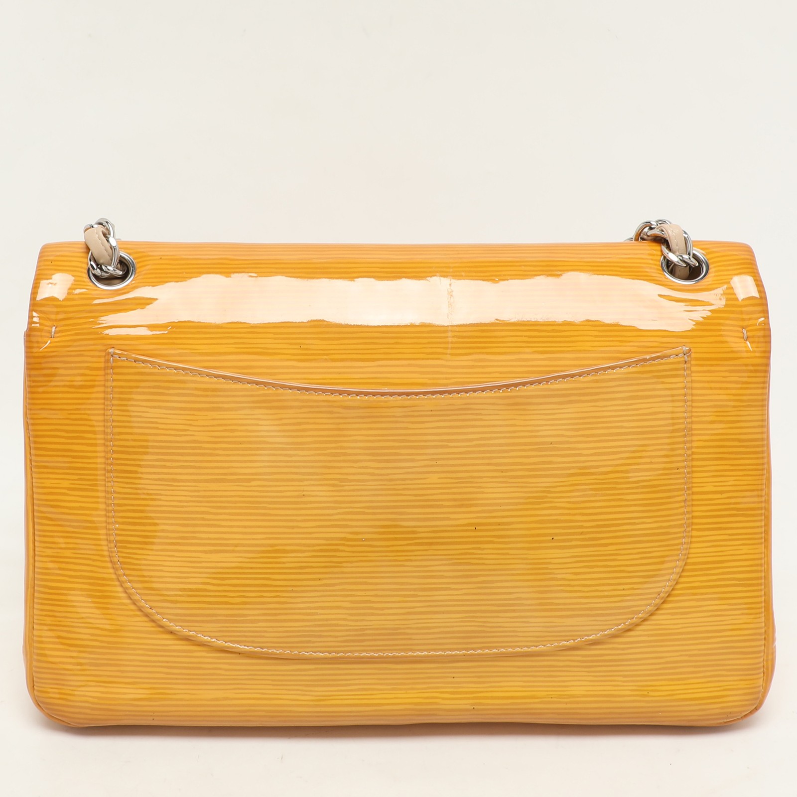 Designer bags are ideal companions for ample occasions Here we have a fashion meets functionality piece crafted with precision. It has been equipped with a well sized interior that can easily fit your small essentials.Certified by The Luxury Closet - This item has gone through a detailed authentication process overseen by our experts. We offer a lifetime guarantee of authenticity on all our items. Import duties, taxes and charges are not included in the item price. These charges are the buyers responsibility. Please check with your country’s customs office to determine what these additional cost will be prior to buying. Our eBay Store About Us Contact Us Add to Favorite Sellers Chanel Yellow Striped Patent Leather Jumbo Classic Double Flap Bag $3070.1 Designer bags are ideal companions for ample occasions Here we have a fashion meets functionality piece crafted with precision. It has been equipped with a well sized interior that can easily fit your small essentials. Product Details Brand Color Yellow Dimensions Material Patent Leather Size Outsole Width Outsole Length Heel Height Includes Certified by The Luxury Closet This item has gone through a detailed authentication process overseen by our experts. We offer a lifetime guarantee of authenticity on all our items. How We Check The in-house team of experts at The Luxury Closet is highly trained to verify the authenticity and the condition of the luxury products. They ensure that only 100% authentic items are put on sale.The evaluation process is unique with its own mix of assessment criteria and differs according to the category. Each item is evaluated based on the following combination of hallmarks, hardware, stitching, symmetry, material, craftsmanship, stamping, codes, hologram stickers, and packaging. Our authenticators also check if the items have been modified or amended (e.g., aftermarket diamonds, replaced batteries, repaired bags, etc.) International Buyers Import duties, taxes and charges are not included in the item price. These charges are the buyers responsibility. Please check with your country’s customs office to determine what these additional cost will be prior to buying.