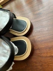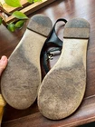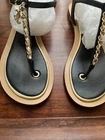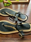 size 38 size flexible due to design color is light gold chainlink and black leather. good condition. authentic. only shoes. ship same or next day.