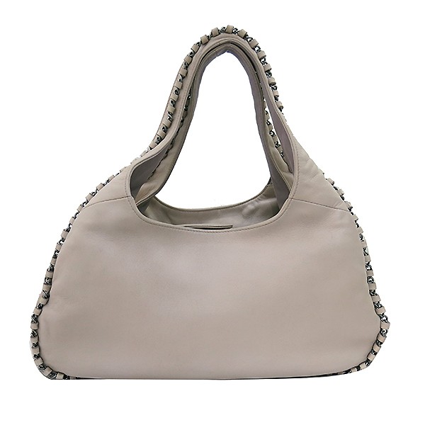 Size: Bottom Size: 37 CM; Height: 19 CM; Width: 15 CM; Handle Height: 20 CM; Color: Beige Accessories: Chanel (Chanel) Luxury by Metal Chain Shoulder Bag [Busan Centum Main Store]. This is a unit of 9. The material is ladder. There is a zipper pocket on the inside. [Note when purchasing] This is a fully dyed item. There is a feeling of use on the leather part of the chain. **Due to the nature of second-hand luxury goods, there may be stains not visible in the image. **