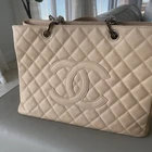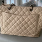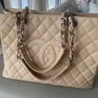 The Beige Caviar Chanel Grand Shopper is a luxurious tote bag crafted in Italy from leather with a quilted finish. Featuring double beige handles and matching hardware, this stylish bag is perfect for women looking for a chic and practical accessory. With a zip closure and inner pockets, this Chanel bag combines fashion and functionality in one elegant design. The beige exterior and lining add a touch of sophistication, making it a versatile piece for any outfit or occasion. This bag was barely used and shows very slight wear on the bottom as shown in the pics. The interior is clean. The condition of this bag is very good. If you require further pics please ask. This comes from a smoke and pet free environment. This bag comes in the original dust bag and box with tag and authenticity card.