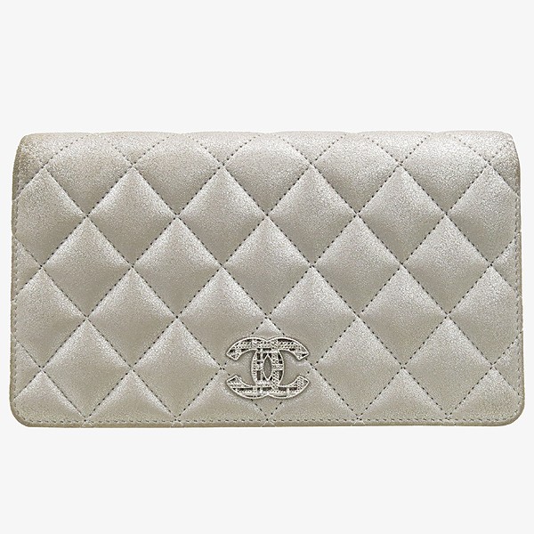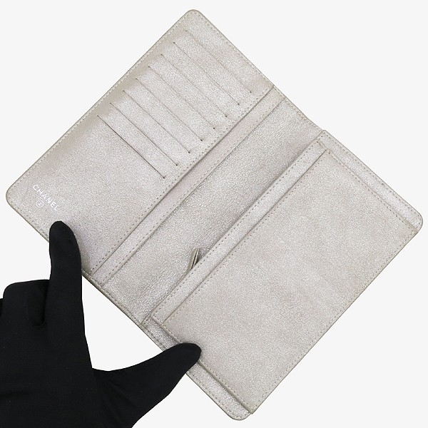 Size: 18.5 CM width/ 10.5 cm tall Color: Silver Gray Accessories: Guarantee Card (20 units)/Case/Dust/Booklet Chanel (Chanel) Silver COCO Logo Quilted Long Wallet [Gangnam Main Store]. There are 8 internal kard storage pockets and 2 bill storage pockets. There are 2 other simple pockets. There is a zippered coin purse on the inside. **Due to the nature of second-hand luxury goods, there may be stains not visible in the image. **