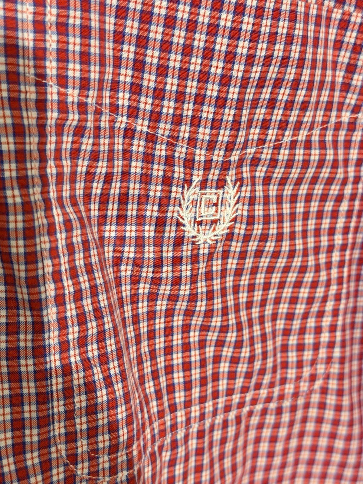 The Chaps men's red and white check short-sleeve button-up shirt in size 4XB is a classic and colorful addition to any wardrobe. Made from cotton, this shirt features a collared neckline with a button-down style and short sleeves, perfect for a casual or business occasion. The red and white check pattern adds a touch of preppy style, while the embroidered accents give it a touch of sophistication. Easy to care for with machine washable instructions, this shirt is suitable for all seasons and is a versatile piece that can be styled in various ways.