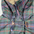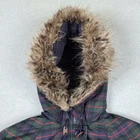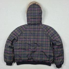 This beautiful Lauren Ralph Lauren puffer jacket is perfect for any occasion, whether you're traveling or just going casual. The jacket is made of a cotton blend and features a canvas fabric type with a plaid pattern. The jacket is mid-length and has a full zip closure with buttons. The jacket is also hooded with a fur trim and has elastic waist pockets. The jacket is perfect for fall, winter, and spring and is water-resistant, wind-resistant, and windproof. The jacket is also padded and has a leather patch, with a drawstring tab made of leather. The jacket is from the 90s and is preppy, outdoor, and designer in style. The jacket is in size M and has long sleeves. The jacket is not available for purchase and is only available for dry cleaning.