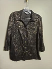 JM Collection Womens Black/Copper 2 Front Pockets Snap Button Front Jacket Small Condition is listed in the condition description. Feel free to look at the pictures for better understanding of the condition. Thank you for considering this item.
