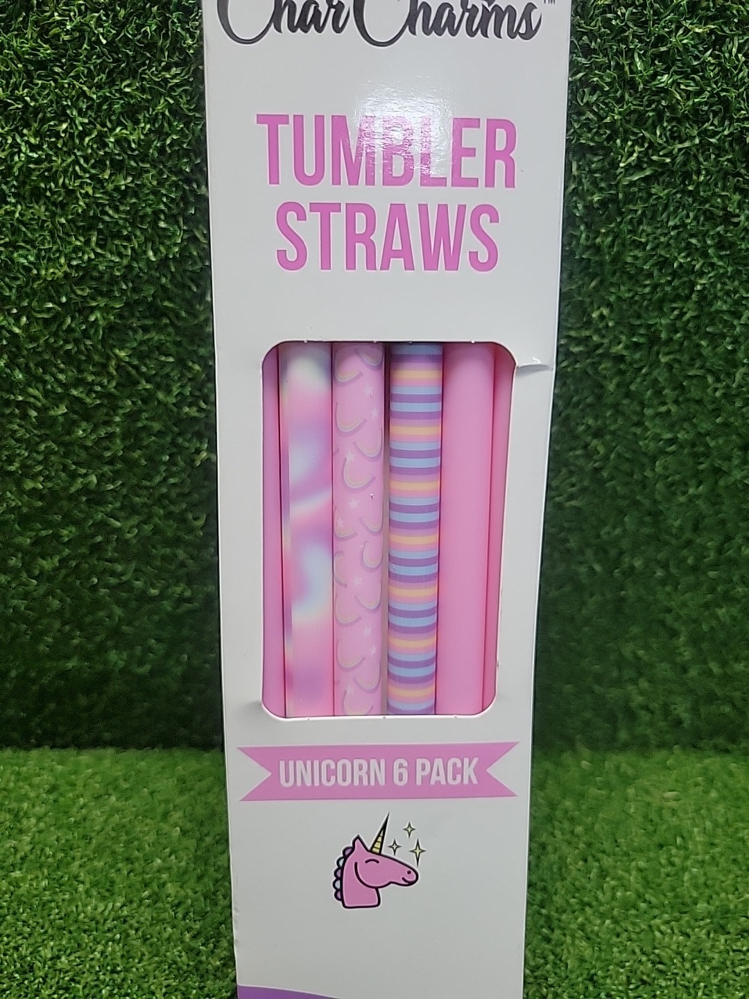 Product Details Give your favorite 40 oz tumbler a fun and stylish upgrade with the Char Charms Tumbler Straws Unicorn 6‑Pack, designed to fit most wide‑mouth tumblers including Stanley‑style drinkware. This reusable straw set features six vibrantly colored, unicorn‑inspired straws that bring a magical touch to every sip of iced coffee, water, smoothies, and cold tea. Crafted from durable, BPA‑free material, these straws offer a sustainable alternative to disposable plastic options and are built for everyday use. Features Designed to fit most 40 oz tumblers, including popular wide‑mouth and Stanley‑style drinkware Includes six reusable straws in vibrant, unicorn‑inspired colors and patterns Durable, BPA‑free material for safe everyday use Approximate straw length: 12 inches for deep tumblers Straw diameter: approximately 10 mm for smooth, unrestricted sipping Dishwasher safe for easy cleanup Reusable design helps reduce single‑use plastic waste
