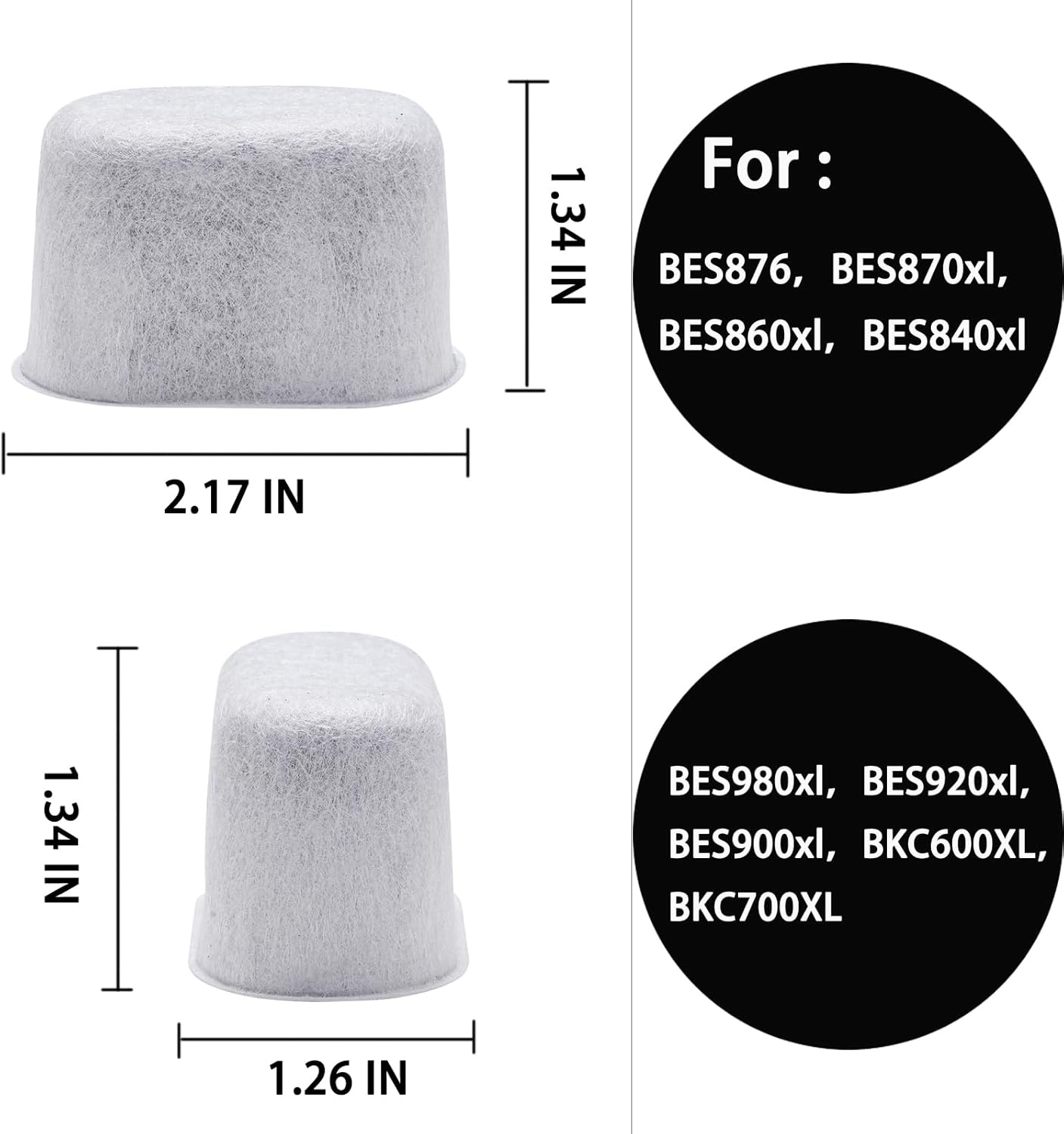 Store New Arrivals Add to Favorite View Feedback Contact Charcoal Water Filter for Breville Barista Pro BES878, Barista Espresso BES876, Bes870Xl, Bes860Xl, Bes840Xl, Bes980Xl, Bes920Xl, Bes900Xl, BKC600XL, BKC700XL Replacement (6Pcs). Description Item model number BWF100 Number of Items 1 Set Name 6 in 1 Material charcoal Product Benefits Reduces impurities, calcium, and chlorine for a softer, smoother taste; easy to use and replace Item Weight 4.2 ounces Product Dimensions 6.3 x 5.1 x 1.8 inches [Compatible Models] Compatible with Breville BES878, BES876, BES980xl, BES920, BES900XL, BES870XL, BES860XL BES840XL,BKC600XL,BKC700XL. [Material Composition] The filter element is made of coconut shell. Due to its high carbon content and unique porous structure, the coconut shell has a large surface area and enhances the adsorption capacity. [Excellent Filtration] The charcoal filters reduce impurities, calcium, chlorine and odors for a softer and smoother taste. [Before Using] Before using the filter, soak it in water for 5 minutes, rinse it for 1 minute, and then enjoy your coffee. [ Tips] Each filter lasts up to 2 months or 60 water tank refills.If the water at home is hard, the water filter needs to be replaced more frequently.Once the coffee tasted not soft enough, just replacing a new one. Charcoal water filters for the following Breville espresso machines: ①、the Oracle Touch (BES990 - Batch 1746 & earlier) ②、the Oracle (BES980 - Batch 1750 & earlier) ③、the Barista Pro (BES878) ④、the Barista Express (BES870) ⑤、the Infuser (BES840) ⑥、the Duo-Temp Pro (BES810) ⑦、the Dual Boiler (BES920 - Batch 1800 & earlier) ⑧、the Dynamic Duo (BEP920 - Batch 1800 & earlier) ABOUT US We offer the best prices around on high quality products. Our E-store includes media such as books, movies, music and games while offering electronics, toys, sporting apparel, clothing, tools, general home, garden items and more. SHIPPING We are always working hard to ensure your package arrives as soon as possible. Please understand that some factors like weather, high postal traffic, and the performance of shipping companies are outside of our control. We offer free shipping to the lower 48 states and ship within 2 business days of payment, usually sooner. We do not accept P.O. Boxes. Please provide a physical address. RETURNS We offer a 30-Day Return Policy on items which you are not completely satisfied with. You have the option for a full-refund or an exchange of the item. No returns are available on items shipped outside of the USA. PAYMENT We accept PayPal. CONTACT US This page content is yet to come Please ad us to your favorite seller and visit again later Thank You CUSTOMER SATISFACTION We try our very best to make sure every customer is completely satisfied. If there's a problem, message us! We're happy to help.