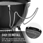 Great addition to the charcoal kettle grills. If you have a deck or a lawn, where you BBQ, get this. It just clamps on and the kettle top slides right down into it. Very simple but exactly what you need to remove the lid for a few moments, or work with the kettle open. If wind is present when starting charcoal, the fire is protected and doesn't go out by placing the cover on the slide a side facing the wind. Before Purchasing, Please confirm your grill is one of the 18”/22” charcoal kettle grills. When lifting the lid from the lid holder, please avoid sudden movement, do it a gentle way. Otherwise the clip might pop off. Compatibility - Compatible with all Weber 18”/22”/26” charcoal kettle grills Premium Material - The slide a side lid prop lid is made of high quality stainless steel, heat-resistant and rust-proof, can be used for long time Must Have Accessories for Kettle Grill - Get Convenience with Lid Holder! This allows you to put your lid in this holder while you tend to the grill. No more putting the lid on a table, the ground, etc. Easy to Use - Clip the holder over the edge of the bowl of your kettle grill for use. The lid just slides right into the holder, and when you are done you grab the lid handle and slide it back onto the grill Effective Wind Blocking - Place the lid on the windward side in windy conditions, which will protect fire from extinguishing when using your grill
