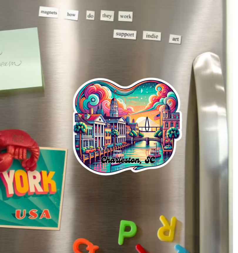 Charleston South Carolina Fridge Magnet Magnet measures approximately 3.25 in x 3 in. Makes a great decoration, gift or stocking stuffer. Thank you for looking!