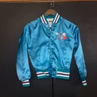 Charlotte Hornets Chalk line Satin Jacket Boys Youth 10-12 Large Spellout 80s 90s Beautiful Rare Jacket Used Condition Some Wear Shown on Jacket Hard to Find Kids Jacket Size 10-12 Measurements in photos #charlottehornets #hornets #nba