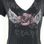 Charlotte Russe Unbroken Heart Cutout Tee Womens XS Black Biker Sexy Y2K Grunge For the days when you want to channel your inner rockstar but don't have a motorcycle handy, this tee's got your back—literally. With a cutout that'll make heads turn and a rose that says "I'm tough but I smell nice," you'll be the queen of casual cool. • Short sleeves for relaxed fit • V-neck with edgy cutout design • Graphic print with rose and wings • Lightweight fabric blend for comfort