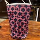 The Charming Charlie tote/bag in blue and pink design with white handles and trim is a stylish and versatile accessory perfect for travel, casual outings, or workwear. Made from faux leather with a geometric pattern, this medium-sized shoulder bag features double handles and gold tone hardware. The interior is lined and includes inner pockets for organization, making it practical for everyday use. The multicolor exterior and beige lining add a chic touch to this shoulder bag from the popular brand, Charming Charlie. Perfect for women on the go looking for a fashionable and functional bag.