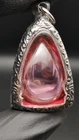 Region of Origin: Southeast Asia Amulet Size: 1 inch Age: Post-1940 Original/Reproduction: Antique Original Seller Notes: “Good Condition” Amulet Stone Color: Pink Amulet Stone Shape: Droplet , Teardrop Amulet From: Thailand , Thai Amulet Amulet Material: Naga Eye Gemstone Primary Material: Mixed Materials Fetish: Charm Wealth Lucky , Fortune , Business Success Color: Multi-Color Type: Amulet