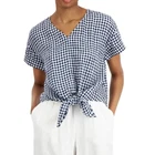 Sz MP Matching Pants Available for Bundle A playful update on timeless plaid, this linen top from Charter Club is punctuated with a soft scarf tie at the front