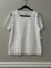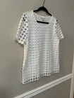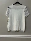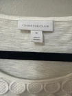 This Charter Club blouse is a must-have for any woman's wardrobe. The short sleeve, round neck design is perfect for casual, business or travel occasions. The blouse is made of a lightweight, lined polyester and cotton material which makes it perfect for summer or spring. The pullover closure adds to the overall comfort of the blouse. The crochet and embroidered accents give the blouse a classic and colorful designer look. The solid white color of the blouse makes it easy to pair with any outfit. The blouse is machine washable for easy care. This basic style blouse is a regular fit and comes in a size M.