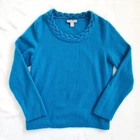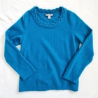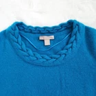 Charter Club Cashmere Sweater Size Large Turquoise Cable Knit Braid Detail Blue Charter Club blue cashmere sweater in women's size large. - Super soft 100% cashmere in a gorgeous turquoise blue color. - Chunky cable knit braided detail at neckline. - Long sleeves, scoop neck. - Some pilling, overall good condition. Super cute and cozy, perfect for adding a pop of color to your fall and winter outfits! 100% 2-ply cashmere. Lay flat measurements: Chest: 18.5 in Length: 23 in ocean blue // cerulean // teal blue sweater // comfy // comfortable // bright // colorful // funky // chic // warm // quality // cottagecore // grandma // cabincore // preppy ✦ All orders ship out within 1-2 days! ✦