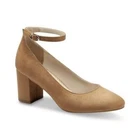 Details Slim ankle-strapping accents the trim silhouette of Charter Club's Francina pumps to add a delicate dimension to handsome tailoring. 2-3/4" block heel Almond-toe pumps with adjustable buckle at ankle-strap Upper: suede; lining: polyurethane; sole: man-made Spot clean Imported Listing and template services provided by inkFrog