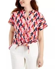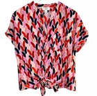 Charter Club Luxury Collection women's button up top with a tie waist. Brand new without tags! Multicolor - red, pink, orange & navy Cap Sleeve Banded collar Pocket at left chest Linen blend Size Large Approximate Measurements: 23" Pit to pit 23" Length _____________________________ * Questions are always welcomed; offers considered on most items * Smoke-free, pet friendly home * Items are shipped fast, next day. Bundle discount on shipping. * eBay return guarantee if item is not as described