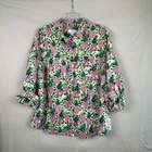 Charter Club Luxury Women's Sz XL Linen Shirt Pineapple Resort Vacation Tropics Fun and colorful button up shirt with a pineapple print. Roll sleeve, button up blouse. All clothing items are steamed and/or washed prior to shipping.