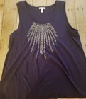Charter Club Womens Blue Pleated Blouse Top with Gold Thread Trim Accent Sleeveless Pullover Size Large