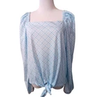 Charter Club Square Neck Soft Blouse Top Shirt Women's Size L Blue and White In great condition! So pretty! Milkmaid Stretch Gathers Retro Girly Modal Cotton Feminine Travel Color/texture may vary due to lighting/devices Items may show wrinkling from packing/transit ID:B15/8