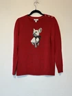 Charter Club Size Medium Frenchie Dog Rhinestone Collar Red Cotton Blend Good Condition Some Light Pilling SEE PICTURES