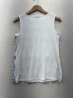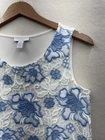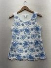 This Charter Club tank top is a stylish choice for women, featuring a sleeveless design with a round neckline in a delicate blue and white floral lace pattern. The top has a pullover closure and is machine washable for easy care. Designed in a regular fit for petites, this tank top is suitable for various occasions such as weddings, parties, or casual wear during the summer and spring seasons. The fabric is stretchy and breathable, offering comfort and a flattering silhouette. Ideal for those who appreciate a basic yet feminine style with crochet accents.