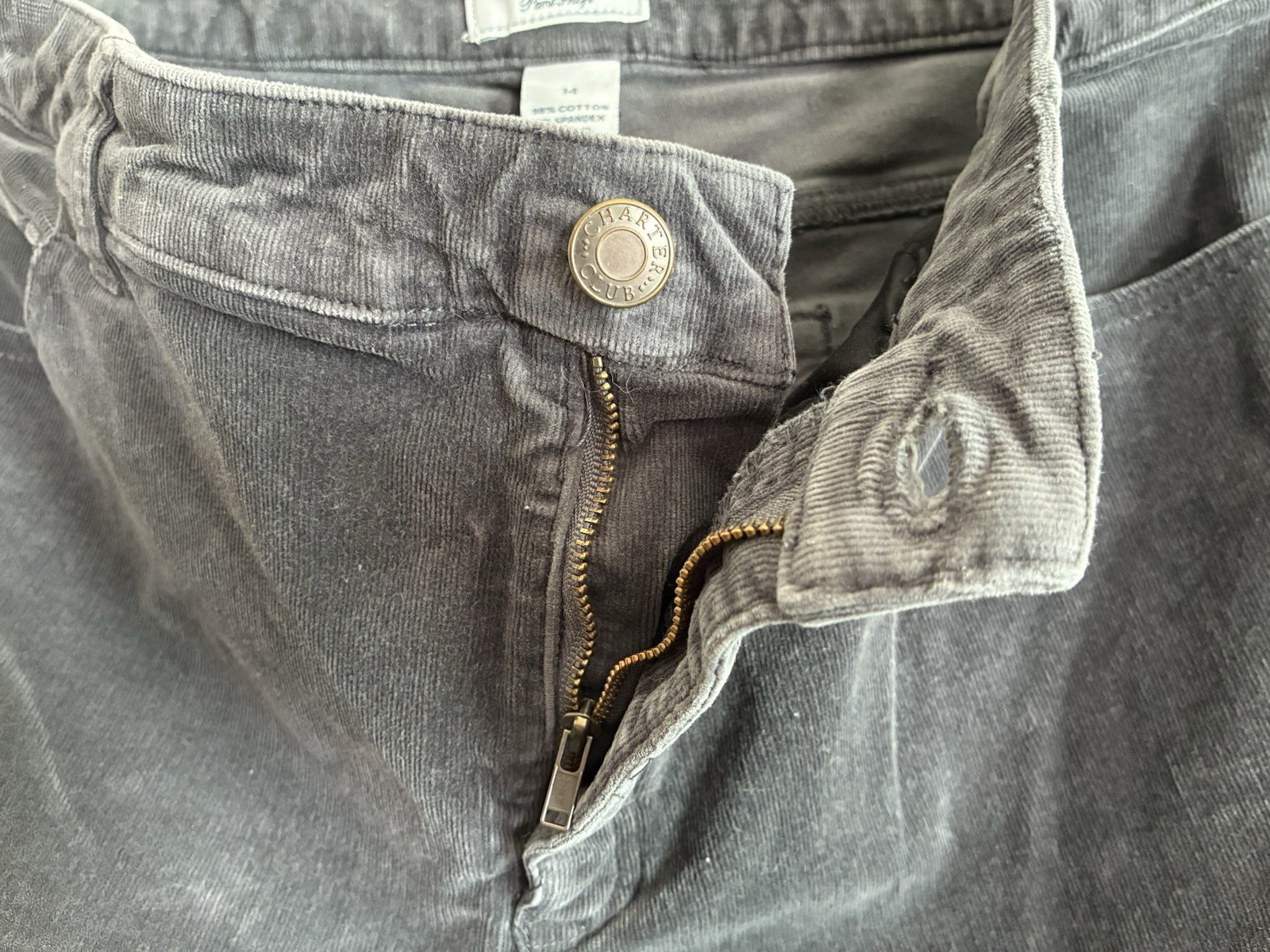 Charter Club Women's Solid Gray Super Stretch Cotton Straight Corduroy Pants 14. Condition is pre-owned. Smoke free, pet free home. Shipped via USPS Ground Advantage. In very good condition. Free of rips or stains.