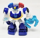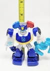 The Chase The Police Bot 3.5" Playskool Heroes Transformers Rescue Bots by Hasbro is a 2015 action figure based on the popular Rescue Bots TV show. This original licensed reproduction features a transforming design, representing the character of Chase The Police Bot from the Transformers franchise. Made of plastic and graded at 100 by Action Figure Authority (AFA), this toy is recommended for children aged 3 and up, making it a perfect addition to any Transformers collection. The 3.5-inch size and detailed design make it a must-have for fans of Transformers and action figures.
