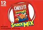 Cheez-It Snack Mix, Lunch Snacks, Office and Kids Snacks, Classic, 9oz Box (12 Packs) About this item : · A perfectly seasoned snack mix of crackers made with real cheese, salty pretzels, mini toasted bread slices, savory wheat squares, and cheese flavored rice balls · Our irresistible baked snack mix is great for sharing and makes a delicious anytime snack that pleases both kids and adults · Made with 100% real cheese aged for a bold taste; Contains wheat, milk, and soy ingredients; Kosher dairy · Convenient caddy box for grab-and-go snacking; Individually wrapped; Stock your home pantry, store for treats at school, in lunchboxes or tote bags for anytime snacking · Includes 1, 9-ounce caddy box of 12, 0.75-ounce pouches of ready-to-eat snack mix; Packaged for freshness and great taste Product Description: Satisfy your snack time cravings with a delicious handful of Cheez-It Snack Mix Classic. This snack mix features a tasty combination of baked snack crackers made with 100% real cheese, salty pretzels, mini toasted bread slices, savory wheat squares, and cheese flavored rice puffs that have been baked to crispy, crunchy perfection. This snack mix is perfectly sized for on-the-go snacking, as a flavorful addition to a packed lunch, or even just a quick bite around the house. Toss a pouch in your tote for a long commute, bring some snack mix in the car for a road trip, or stash them in your desk at the office for convenience. You can spice up everyday, out-of-the-home activities like field trips, camping, hiking, trips to the park, picnics, outdoor concerts, errands, and more by bringing along our Classic snack mix. No matter where you enjoy it - you'll love the epically satisfying mix of flavors in every handful of Cheez-It Snack Mix Classic.