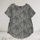 Color: Multicolor Size: L Neckline: Round Neck Sleeve Length: Short Sleeve Country/Region of Manufacture: China Occasion: Casual, Party/Cocktail, Travel, Workwear Fit: Regular Material: Polyester Closure: Pullover Theme: Classic, Modern Brand: Party Features: All Seasons, Lightweight Type: Blouse Garment Care: Machine Washable Accents: Pleated Back Pattern: Animal Print Size Type: Regular Vintage: No Style: Basic Department: Women Character: Chelsea & Theodore Sleeve Type: Casual Sleeve