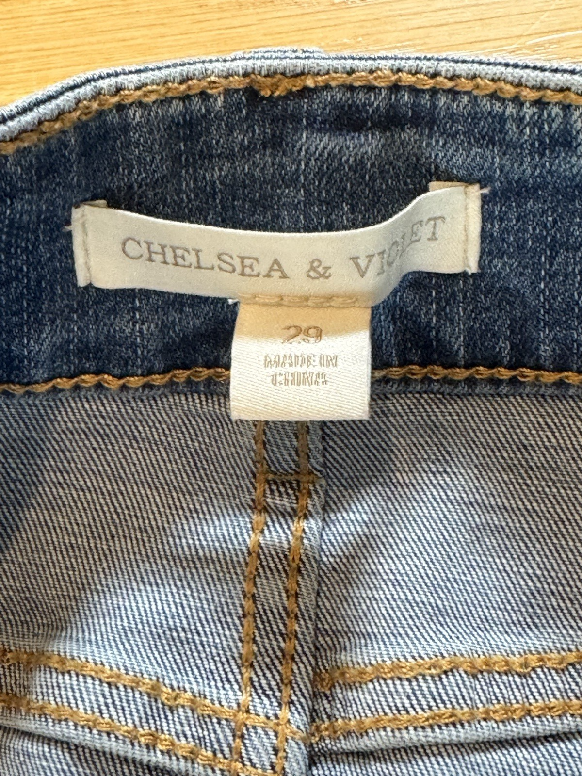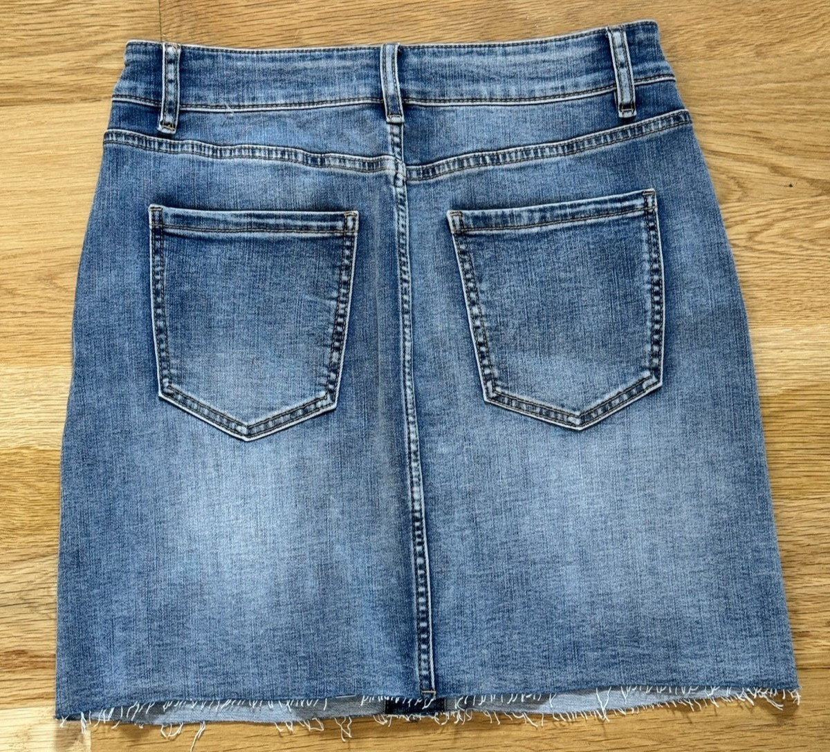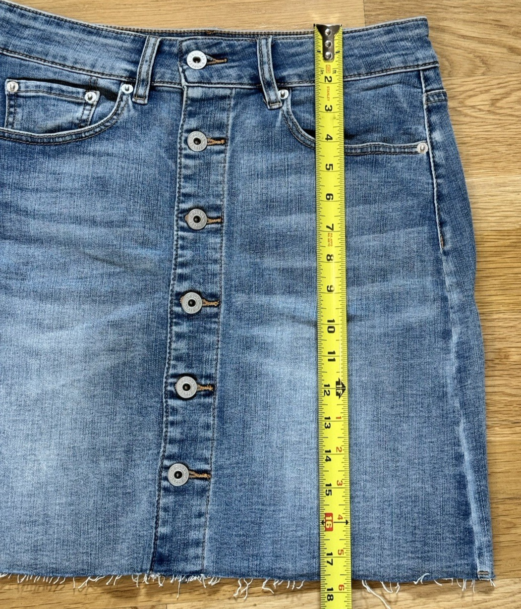 The Chelsea & Violet size 29 blue jean denim distressed button up mini skirt is a stylish piece for women looking to add a casual and trendy item to their wardrobe. Made from a comfortable cotton blend denim fabric with a light wash, this skirt features a solid blue color and a button closure. The mid-rise skirt has a short length and includes distressed accents for a touch of edginess. Perfect for all seasons and versatile enough to be worn with any top, this skirt is a fashionable addition to any outfit.