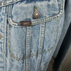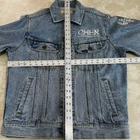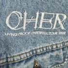 Lee Size Small Cher Living Proof Farewell Tour 2002 jacket. Gentle worn. Please see pics to see the brownish tint but appears to be just the distressed denim. I am a size large and jacket fits my should but in no way meets to close. Please see pics for condition and measurements.