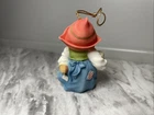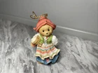 This is a vintage Cherished Teddies figurine from 1998 featuring a Swedish girl bear hanging ornament. It is part of the Enesco brand's collection and is made of resin. The figurine is small in size, multicolor, and depicts a girl bear character. The item is a retired collector bear and comes without packaging.