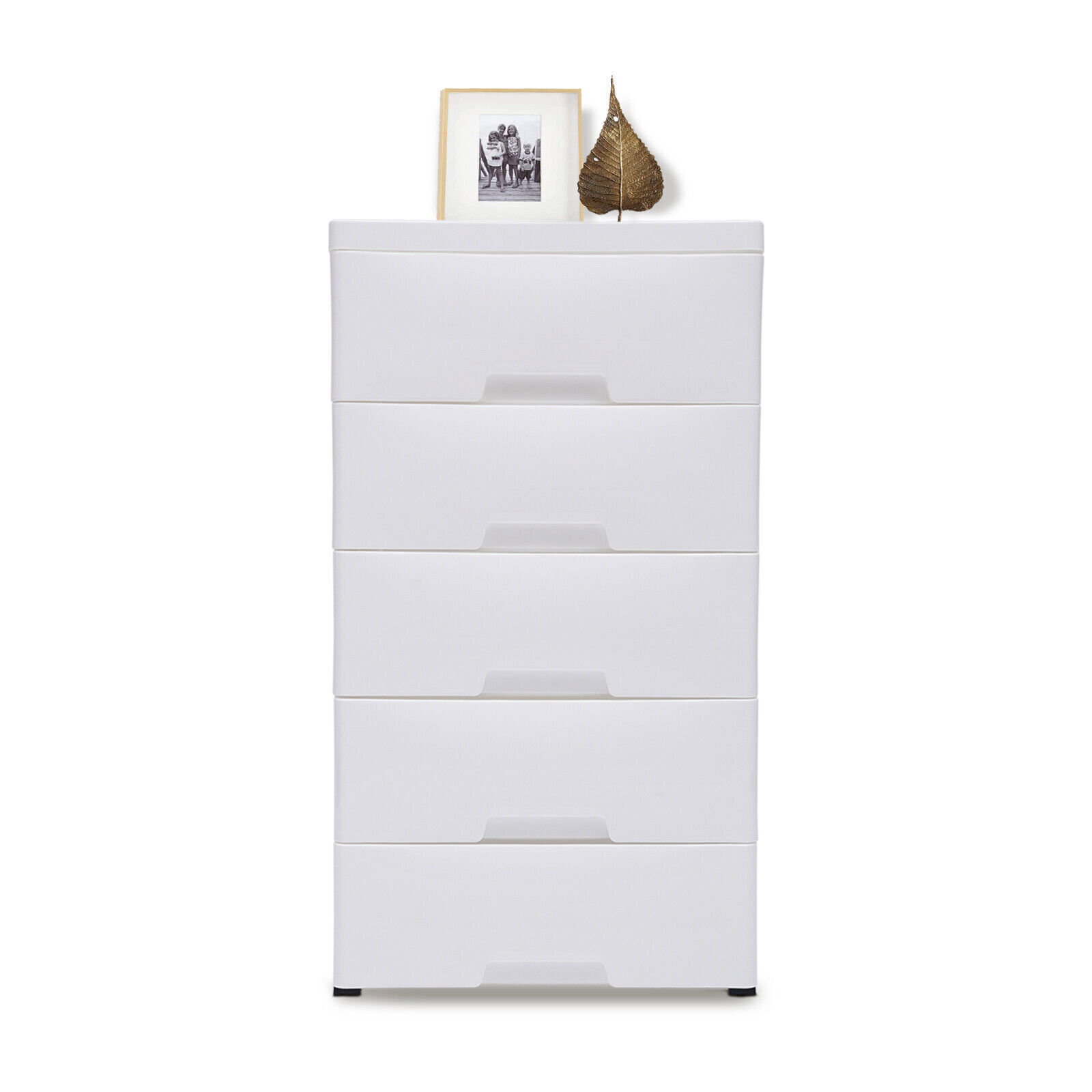 Description Are you still struggling with where to put the miscellaneous items in your room? Or bothered by the cluttered arrangement? If you answered yes to these questions, you shouldn't miss this 5-drawer storage cabinet. It uses healthy and environment-friendly PP material that you can use with confidence and it allows you to store many different types of items. Let you say goodbye to your messy home. Specification Material: PP Color: White Layers: 5 Style: Modern Gross Weight: 4.9kg/10.8lbs Net Weight: 4.1kg/9.04lbs Load Capacity: 25kg/55.12lbs Package Size: 45.5*37*32cm/17.91*14.57*12.6inch Product Size: 43.5*29*80cm/17.1*11.4*31.5in Drawer Internal Size: 36*23*14cm/14.17*9.06*5.51inch ๐ WELCOME ๐ Description Are y ou still struggling with where to put the miscellaneous items in your room? Or bothered by the cluttered arrangement? If you answered yes to these questions, you shouldn't miss this 5-drawer storage ca binet. It uses healthy and environment-friendly PP material that you can use with confidence and it allows you to store many different types of items. Let you say goodbye to your messy home. Key Features Healthy and Durable Material: The storage cabinet is made of healthy and environment-friendly PP material, which is non-toxic and tasteless . It is not only harmless to human health but also very strong and durable. Large Capacity: This storage cabinet has 5 drawers and a flat top. You can sort and place many things in side to make your room tidier. The storage space is large enough to meet your needs. Highly Sealed: The storage cabinet is seamlessly integrated, which can effectively prevent mold and insects and provide protection for clothes and items all the time. Safety Protection : Eac h layer of drawers has a snap design so that the drawer will not completely slide down to hit you. And the rounded corners without burrs will not scratch your hands. Space-saving: It saves space by making full use of vertical space. It only needs to be placed in small corners of living rooms, bedrooms and bathrooms without taking up too much space. Strong Load-bearing Capacity: This storage cabinet made of PP is strong and stable with a load-bearing capacity of 25kg/55.12lbs, so you can place many items with confidence. Easy to Access: Each drawer of this storage cabinet has a full pull-out design and a handle, which can display all items and make it more convenient to pull the drawer to easily access items inside. Easy to Move: The bottom of the storage cabinet has 4 wheels, so you can easily move the cabinet, which saves time and effort. Versatile Decorative Item: This storage cabinet is in white, which is a versatile color. Coupled with its simple and generous design, it can fit greatly into various decoration styles and scenes. Ideal Gift: This storage cabinet has a unique design with a beautiful appearance and a large capacity with practical features. It is an ideal gift for Valentine's Day, Mother's Day, Thanksgiving, Christmas, and weddings. Details Reinforced Flat Top: The reinforced flat top is finely made and has a strong load-bearing capacity that allows it to hold many items. And it is not only easy to access but also very space-saving. Curved Handle: The handle of these drawers is a built-in curved handle that fits the shape of your hand. You can easily pull it out and do not worry about the handle loosing. This is both beautiful and practical. Removable Pulley: The pulley at the bottom of the storage cabinet makes it easy to move. If you don't need the pulley, you can also remove it, which is very flexible. Spare Wheel: We provide an extra spare wheel. If the wheel is accidentally damaged, you don't have to buy a new wheel. You just need to put the spare wheel on, which is very convenient and saves money. Application This item can be used in bedrooms, living rooms, studies, powder rooms, beauty stores, etc. for neatly storing books, office supplies, snacks, household items, etc. Specification Material: PP Color: White Layers: 5 Style: Modern Gross Weight: 4.9kg/10.8lbs Net Weight: 4.1kg/9.04lbs Load Capacity: 25kg/55.12lbs Package Size: 45.5*37*32cm/17.91*14.57*12.6inch Product Size: 43.5*29*80cm/17.1*11.4*31.5in Drawer Internal Size: 36*23*14cm/14.17*9.06*5.51inch Package Included 10* Side Plates 5* Backplates 1* Top Plate 5* Drawers 5* Wheels 4* Wheel Covers 1* English Manual All Accessories for Assembly Notes Please allow the slight color difference caused by the shooting light and 1-3cm error due to manual measurement, and make sure you do not mind before you order. Payment Delivery details Terms of sales About us Contact us Payment We accept ebay payment ใ Fees such as import duties, taxes are not included in the item price or shipping costs. These charges are the buyer's responsibility. Delivery details Shipping: 2-9 working days to: USA Terms of sales We maintain high standards of excellence and strive for hundred percent customer satisfaction. Feedback is very important to us. We hope that you contact us immediately before you give neutral or negative feedback, so that we can address your concerns. It is impossible to address issues if we do not know about them! About us Your satis faction is our ultimate goal. We work hard to earn your trust and future business. Our certified technicians have tested each item before shipping. The unit comes with 1 year limited warranty on all manufacturing defects. a) If you receive a defective item, you may return it or ask for a discount. Please contact us within 14 days after you receive the package. b) What you returned must be intact and in its original packaging as re? u. Customer is responsible for shipping costs of the returned item. c) We will cover the cost of shipping back t with the shipping rate indicated in the registration page. We will send you a new unit or refund the full payment you paid. Thank you. Contact us Business Hour Business Hour: Monday To Friday: 8:30 AM to 5:00 PM (Beijing China time) Due to time