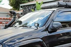 This hood light bracket is designed for the Chevrolet Trailblazer and is made of durable steel material. The bracket is perfect for attaching auxiliary lights to the front of your vehicle and comes in a sleek black color. The package includes two pieces and weighs only 1 lbs, making it easy to install and use. The hood light bracket fits perfectly on the front of your Trailblazer, providing a sturdy base for your auxiliary lights. It is a must-have accessory for any off-road enthusiast, allowing you to safely navigate even the most challenging terrains. With its durable construction, this hood light bracket is sure to withstand even the toughest conditions. The side marked with "1" should face towards the car's hinges, while the side marked with "2" should face upwards. Please note that hardware is not included. - Off road use only. - Off road lights are not included.