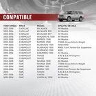 New Front Driver and Passenger Lower Ball Joint Set Fits Front Driver and Passenger Sides 2x Front Lower Ball Joint - K6541 OE/OEM Part Number: K6541,12472819, 12475478, 15245582, 15922557, 19209396, 20869199, 20869200 New Front Driver and Passenger Lower Ball Joint Set Fits Front Driver and Passenger Sides 2x Front Lower Ball Joint - K6541 OE/OEM Part Number: K6541,12472819, 12475478, 15245582, 15922557, 19209396, 20869199, 20869200 Fitment: YEAR RANGE MAKE MODEL SPECIFIC DETAILS 2002-2006 CADILLAC ESCALADE All Models 2007-2014 CADILLAC ESCALADE Models w/Steel Control Arms ONLY 2003-2006 CADILLAC ESCALADE ESV All Models 2007-2014 CADILLAC ESCALADE ESV Models w/Steel Control Arms ONLY 2002-2006 CADILLAC ESCALADE EXT All Models 2007-2013 CADILLAC ESCALADE EXT Models w/Steel Control Arms ONLY 2007-2013 CHEVROLET AVALANCHE Models w/Steel Control Arms ONLY 2002-2006 CHEVROLET AVALANCHE 1500 All Models 2003-2014 CHEVROLET EXPRESS 1500 All Models 2003-2005 CHEVROLET EXPRESS 2500 7300lb Gross Vehicle Weight 1999-2003 CHEVROLET SILVERADO 1500 4WD/AWD 2004-2006 CHEVROLET SILVERADO 1500 RWD; Front Torsion Bar Suspension 2004-2006 CHEVROLET SILVERADO 1500 4WD 2007-2016 CHEVROLET SILVERADO 1500 Models w/Steel Control Arms ONLY 2000-2006 CHEVROLET SUBURBAN 1500 All Models 2007 CHEVROLET SUBURBAN 1500 Models w/Steel Control Arms ONLY 2008 CHEVROLET SUBURBAN 1500 All Models 2009-2013 CHEVROLET SUBURBAN 1500 Models w/Steel Control Arms ONLY 2000 CHEVROLET TAHOE 4.8L & 5.3L V8 Engines 2001-2006 CHEVROLET TAHOE All Models 2007-2015 CHEVROLET TAHOE Models w/Steel Control Arms ONLY 2003-2012 GMC SAVANA 1500 All Models 2003-2005 GMC SAVANA 2500 7300lb Gross Vehicle Weight 1999-2006 GMC SIERRA 1500 4WD/AWD 2004-2006 GMC SIERRA 1500 RWD;Front Torsion Bar Suspension 2007-2016 GMC SIERRA 1500 Models w/Steel Control Arms ONLY 2000 GMC YUKON 4.8L & 5.3L V8 Engines 2001-2006 GMC YUKON All Models 2007-2014 GMC YUKON Models w/Steel Control Arms ONLY 2000-2008 GMC YUKON XL 1500 All Models 2009-2014 GMC YUKON XL 1500 Models w/Steel Control Arms ONLY