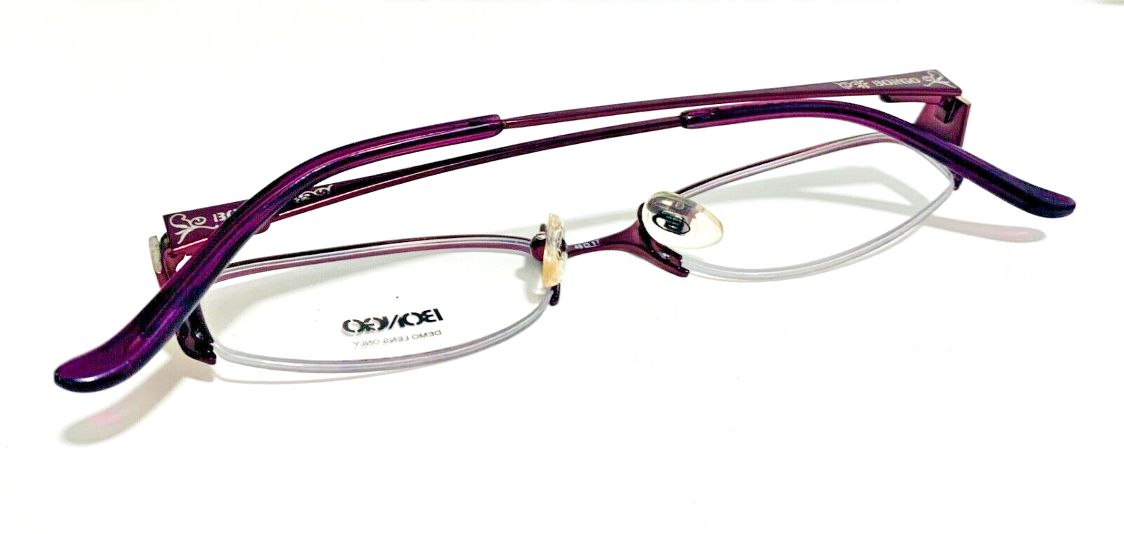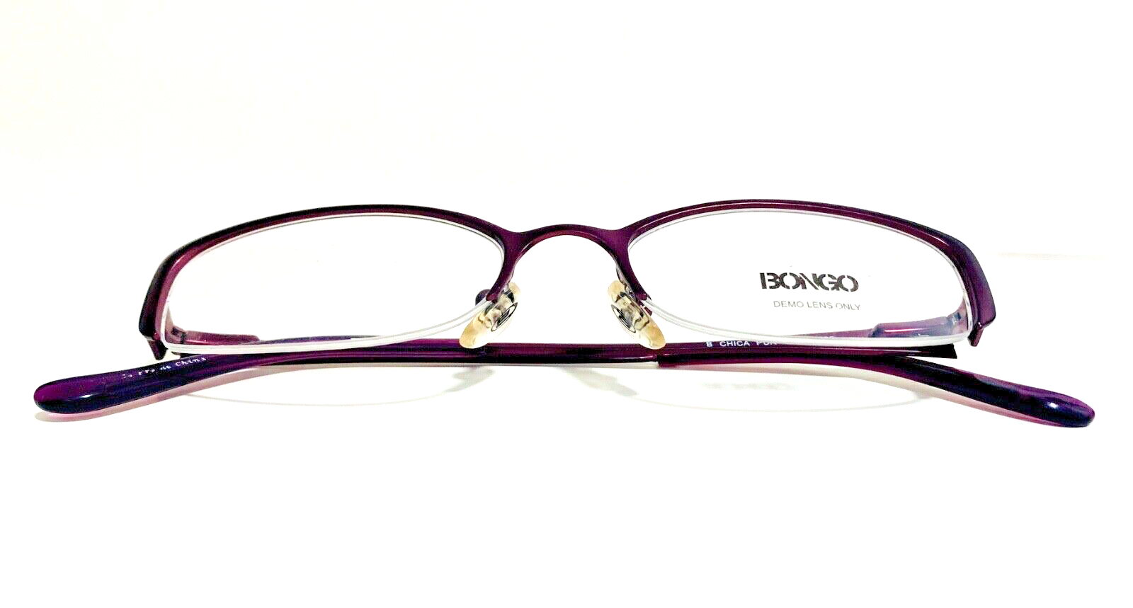 RACCOON STASH WELCOMES YOU! 100% Money Back Guarantee! NEW AUTHENTIC BONGO Chica Purple / Dark Burgundy Semi-Rimless Metal RX EYEGLASSES The frame is brand new, never used or worn! Note: Demo lenses may have some minor scratches from handling in store, but they are meant to be removed when installing your prescription lenses! COMES WITH GENERIC SLEEVE CASE and GENERIC CLEANING CLOTH! Model: Bongo Chica Purple Color: Purple / Dark Burgundy Lens Color: Clear RX Demo Size: 48-17-135 MM All items are packaged carefully for shipping to prevent any damage during transportation. International Buyers - Please Note: Import duties, taxes, and charges are not included in the item price or shipping cost. These charges are the buyer's responsibility. Please check with your country's customs office to determine what these additional costs will be prior to bidding or buying. If you have any questions please feel free to ask. Thank you for choosing us for your optical needs! Item ID: RV 009_123