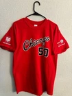 Celebrate half a century of hoop history with the Chicago Bulls NBA 50th Season Jersey-inspired T-shirts! Each T-shirt draws inspiration from the teams jerseys from each decade! - 1969 - 1974 - 1984 - 1996 - 2003 - 2016 All T-shirts are Gildan Brand and Size Large! Only 1 of each design available! NEW / Never Used or Worn / Smoke Free Home
