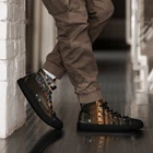 The UVelsi P 001 High Top sneakers for men are premium canvas shoes with a lace-up closure. These limited edition shoes feature a cushioned and lightweight design, perfect for casual, activewear, or workwear occasions. The black high top sneakers are handmade with a rubber outsole, making them comfortable and adjustable. The shoes come in UK sizes 4-12 and EU sizes 37-48, suitable for various activities like basketball, running, and gym training. Step up your shoe game with the High Top Canvas Shoes. These handmade, trendy shoes are sure to spice up your outfit. Get yours now! • 100% polyester, canvas upper side • Ethylene-vinyl acetate (EVA) rubber outsole • Breathable lining, soft insole • Faux leather toe cap • Padded collar, lace-up front • Soles and laces in matching colors Size guide preview (Imperial) US Men UK Europe Foot Length Japan Outsole Length 5 5 4 37.5 9 ⅛ 23 10 ¼ 6 6 5 38.5 9 ½ 24 10 ⅝ 7 7 6 40 9 ¾ 25 10 ¾ 8 8 7 41 10 ⅛ 26 11 ⅛ 9 9 8 42.5 10 ½ 27 11 ⅝ 10 10 9 44 10 ¾ 28 12.00 11 11 10 45 11 ¼ 29 12 ⅛ 12 12 11 46.5 11 ¾ 30 12 ¾ 13 13 12 47.5 12 31 12 ¾ 5.5 5.5 4.5 38 9 ¼ 23.5 10 ¼ 6.5 6.5 5.5 39 9 ⅝ 24.5 10 ⅝ 7.5 7.5 6.5 40.5 10.00 25.5 11 ⅛ 8.5 8.5 7.5 42 10 ¼ 26.5 11 ⅜ 9.5 9.5 8.5 43 10 ⅝ 27.5 11 ⅝ 10.5 10.5 9.5 44.5 11.00 28.5 12 ⅛ 11.5 11.5 10.5 46 11 ½ 29.5 12 ½ 12.5 12.5 11.5 47 11 ⅞ 30.5 12 ¾ Size guide preview (Metric) US Men UK Europe Foot Length Japan Outsole Length 5 5 4 37.5 23.2 23 26.2 6 6 5 38.5 24.1 24 27 7 7 6 40 24.8 25 27.3 8 8 7 41 25.7 26 28.3 9 9 8 42.5 26.7 27 29.5 10 10 9 44 27.3 28 30.5 11 11 10 45 28.6 29 30.8 12 12 11 46.5 29.9 30 32.4 13 13 12 47.5 30.6 31 32.4 5.5 5.5 4.5 38 23.5 23.5 26.2 6.5 6.5 5.5 39 24.5 24.5 27 7.5 7.5 6.5 40.5 25.4 25.5 28.3 8.5 8.5 7.5 42 26 26.5 29 9.5 9.5 8.5 43 27 27.5 29.5 10.5 10.5 9.5 44.5 28 28.5 30.8 11.5 11.5 10.5 46 29.2 29.5 31.8 12.5 12.5 11.5 47 30.2 30.5 32.4