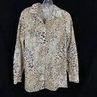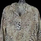 Chico's 0 No Iron Shirt Top Women's Size Small 4-6 chest: 19" Length: 27" Collared button front Beige, ivory & brown Animal print Long Sleeve Nice for many occasions Combined shipping and savings available on 2 or more items USE 10% off coupon too
